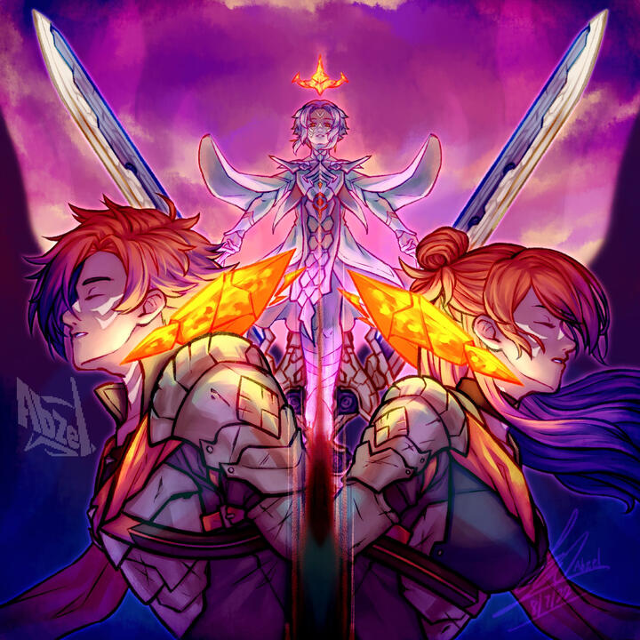 Arjuna was raised in an isolated village near Ordelia Territory, by his adoptive mother who gave him his name. His early childhood memories are hazy, other than the kind treatment he received growing up and the wealth of knowledge his mother possessed. However, early into his teenage years, she passed away. Arjuna was left alone once more, and left his village to seek work and a life for himself.Over the next few years, he joined and departed from a handful of mercenary companies. In 1179, Arjuna, often called June, was a member of Berling's Mercenaries. When the lord who had hired them sent them into battle against another company, Berling and the rest of the company perished thanks to the devastating ace of Jeralt's Mercenaries: The Ashen Demon. June would have perished as well, had a sleeping power not awakened within him. A being called Arval gave him the strength to fight on, and Jeralt called off his men as their job was complete.June spent the next half a year training and trying to tail down Jeralt's Mercenaries, seeking to get payback for the thrashing he'd taken months ago. Before he could find them however, he encountered a trio of young adults fleeing from the Iron King's Bandits. After helping them route the rogues, they introduce themselves as the heirs to the Adrestian Empire, Holy Kingdom of Faerghus, and Leicester Alliance. June returns to Garreg Mach Monastery where they are attending the Officer's Academy, and is enrolled free of charge as thanks for saving the very important students.The time spent at the Academy is brief however, as conflict arises in each of the major regions and all students return home. June stays with the leader of his house, and ends up serving as a member of their army when they take control of their lands. Two years later, war is declared by the Empire, and June is charged to lead the army as a commander in the battles to come.